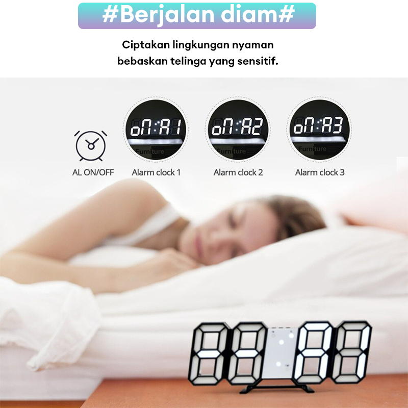 Jam Dinding Digital LED 3D Bentuk Angka Modern Minimalis tampilan waktu suhu Tanggal