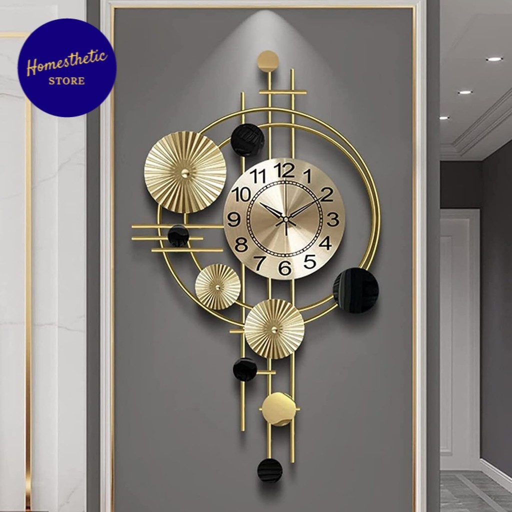 Jam Dinding Gold Mewah Aesthetic Premium Luxury Geometric Iron Silent Clock 78cm Modern Estetik Untuk Kamar Ruang Tamu Keluarga Ruang Makan