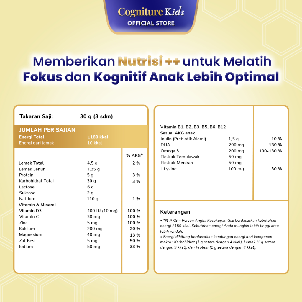 Cogniture Brilli Active Pro Susu Kecerdasan Anak dari Nutrisi Alami Rasa Vanilla
