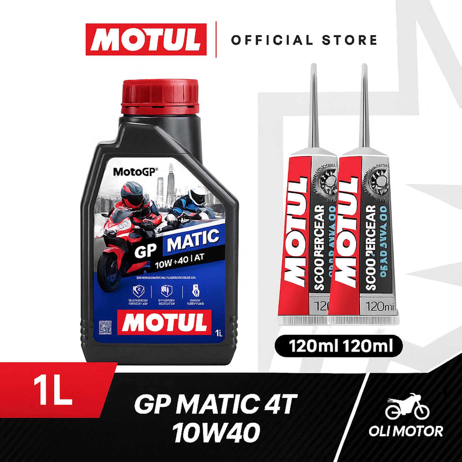 MOTUL Paket Oli GP Matic 1 Liter 10W-40 & 2 Oli Gardan 120ml 80W90 Original untuk NMAX Aerox PCX ADV Mesin Motorcycle