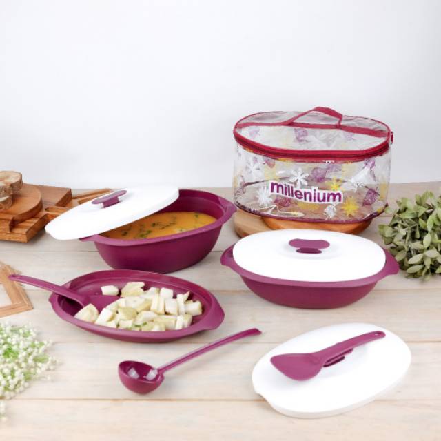 Millenium Serving Set - Kotak Makanan Wadah Tempat Sayur Set Mangkok Mangkuk Piring Centong