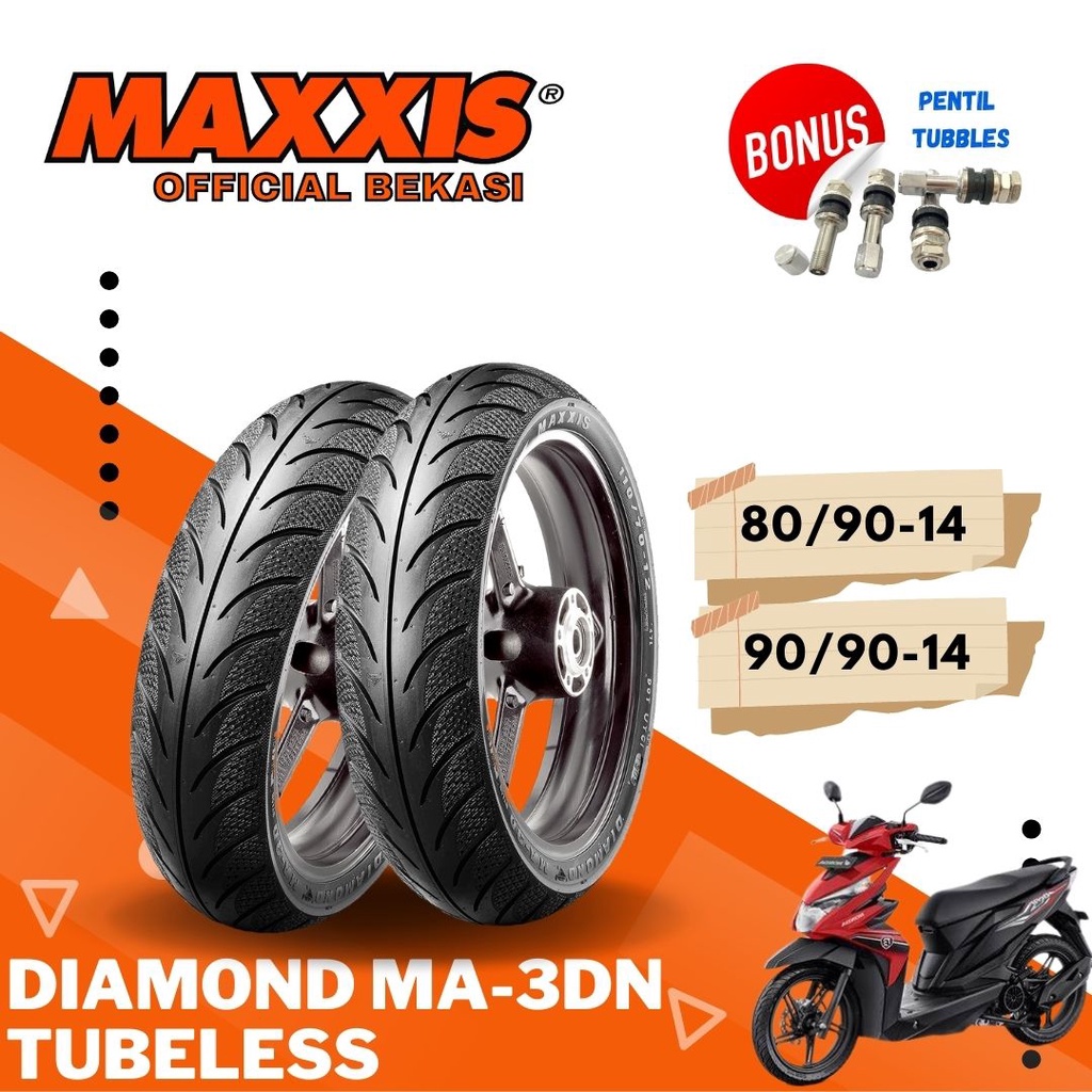 Ban Motor Ring 14 Ring 17 Maxxis Diamond Sepasang Diamond Ma-3dn 80/90-14 + 90/90-14 Ban Tubeless Maxxis Official Store