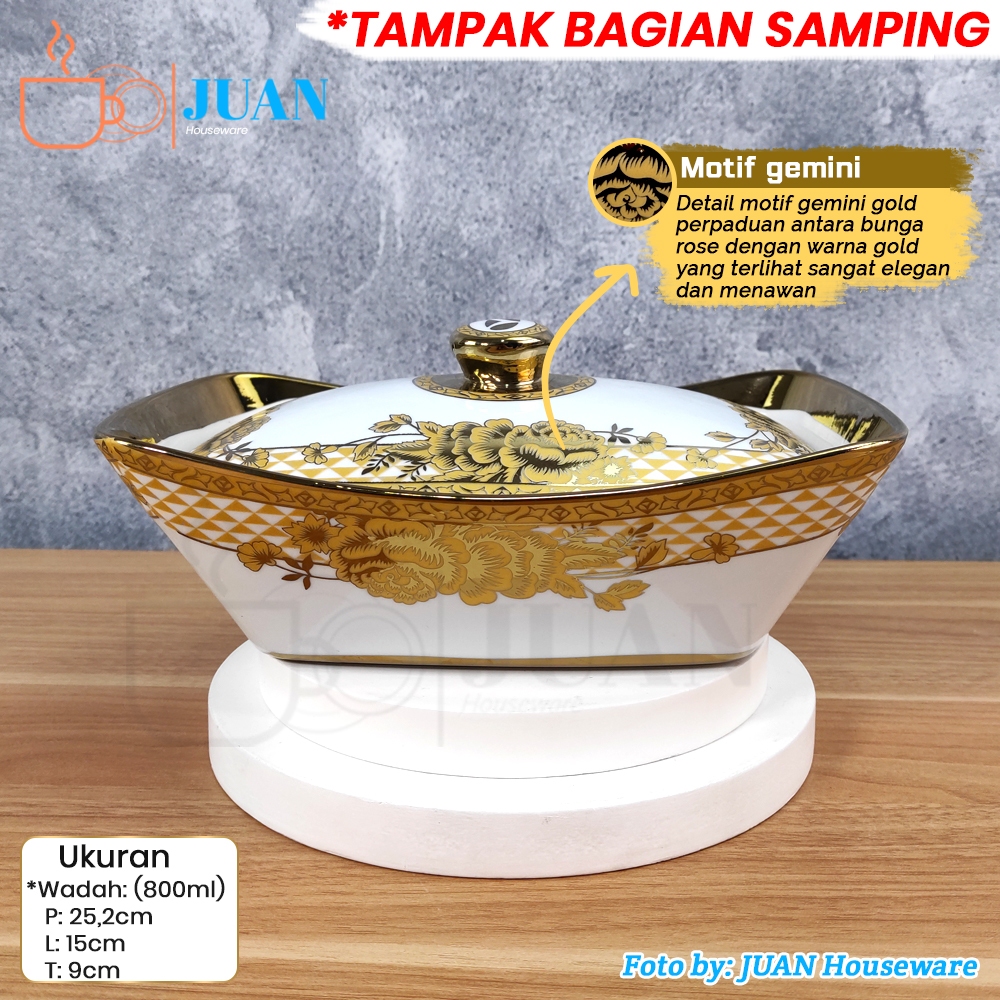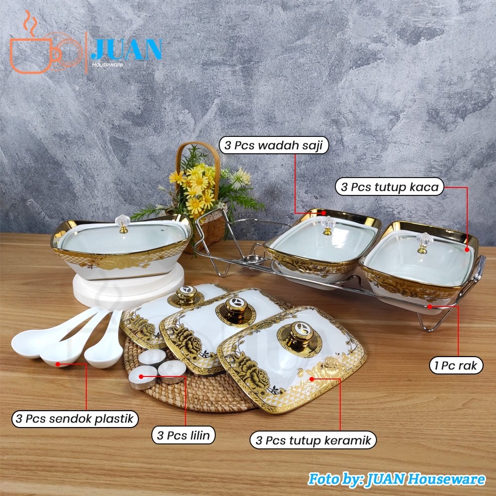 VICENZA Prasmanan Set Keramik Motif Gemini + Rak + Tutup Kaca & Tutup Keramik / Caasserole set Porcelain CR-751-DC