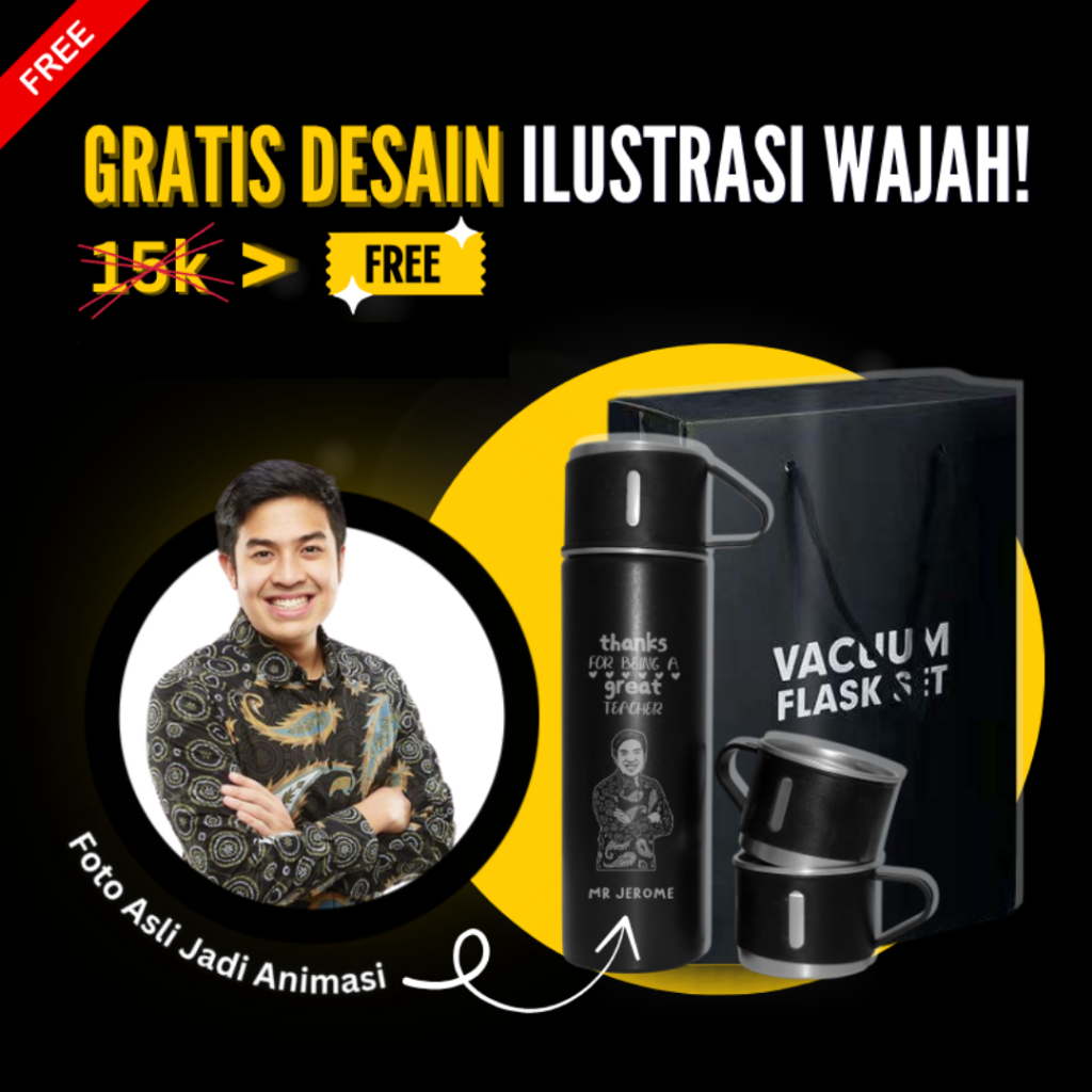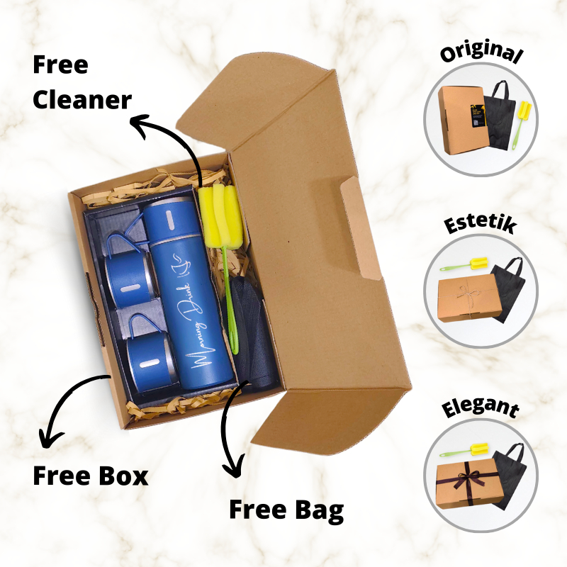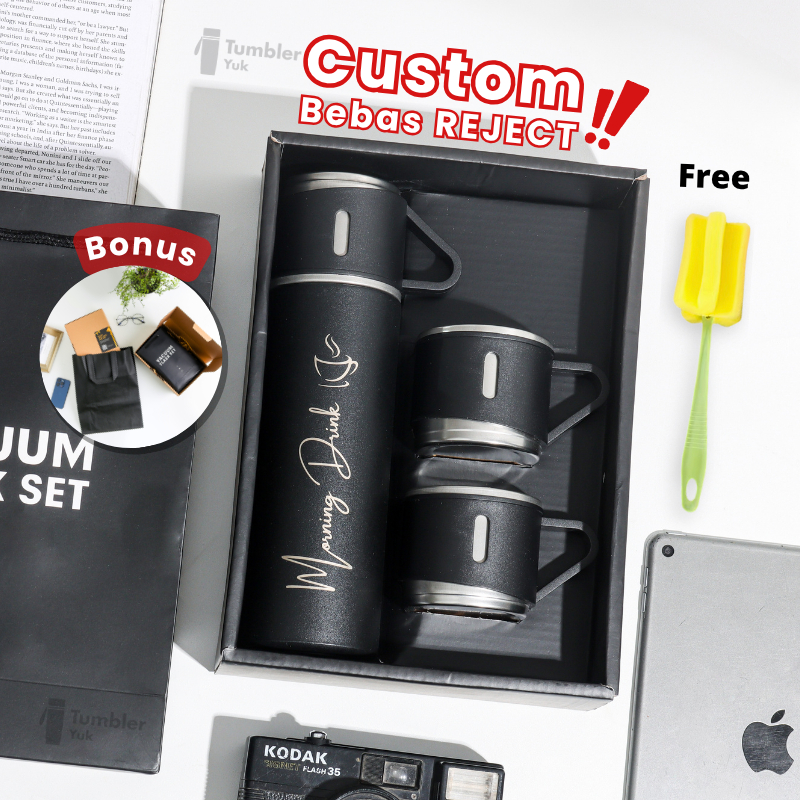 Termos Sultan Custom Nama Vacuum Flask Set Grafir Nama / Logo Botol Stainless Cangkir 3 in 1