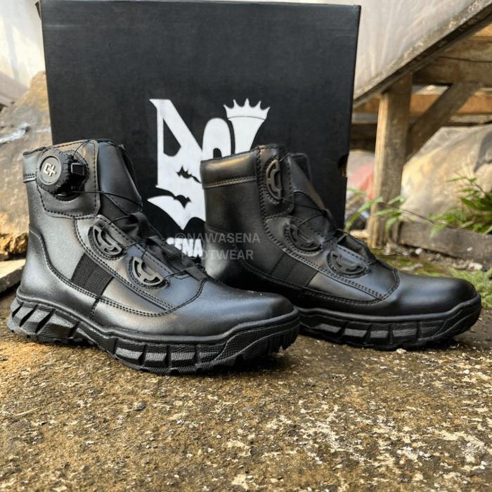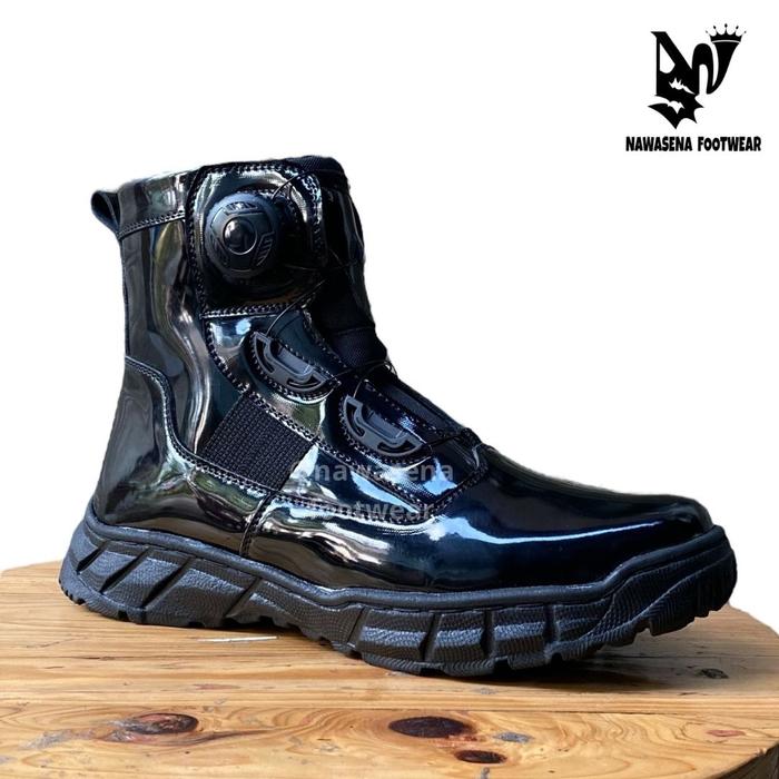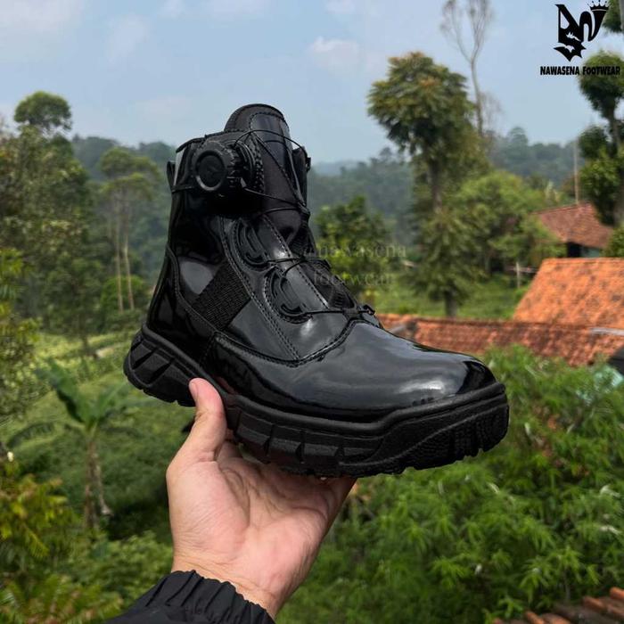 SEPATU PDH PDL TALI PUTAR PENDEK UNTUK TNI POLRI SECURITY DISHUB MODEL MIDTRACK BOOTS SHOES CANVAS PASPAMPRES - HITAM DOP, 39