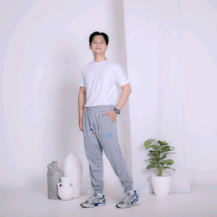 CELANA JOGER WARNA HITAM PANJANG DEWASA PRIA WANITA KAIN BEBYTERI PREMIUM JOGGER SPORT - ABU MUDA, ALL SIZE XXL