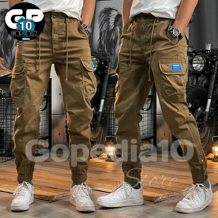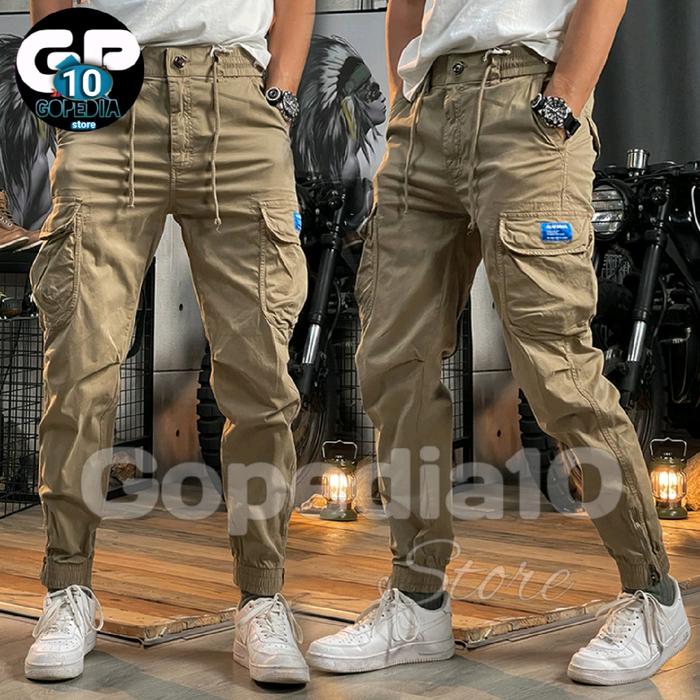 GOPEDIA CELANA PANJANG JOGGER CARGO MULTI SAKU,TALI MODE JOGGER SLIM FIT KASUAL STREETWEAR PRIA DAN WANITA - ABU ABU, 29