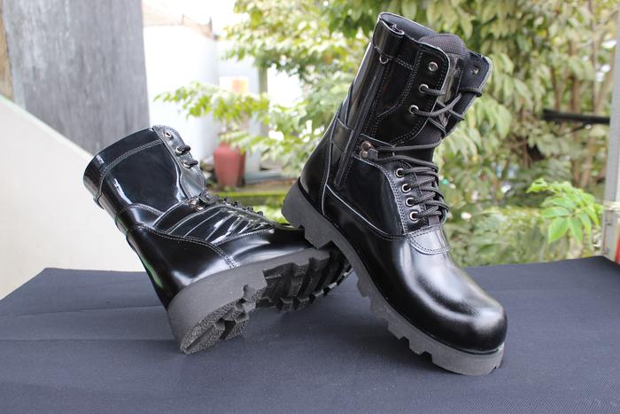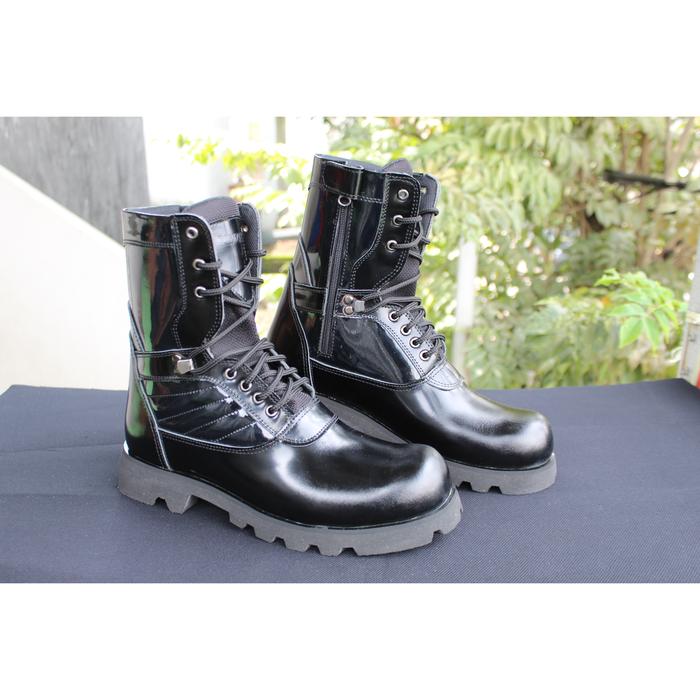 SEPATU IMZAM BOOTS SAFETY PDL PDH POLRI KULIT ASLI LAK KILAP TERLARIS - 38