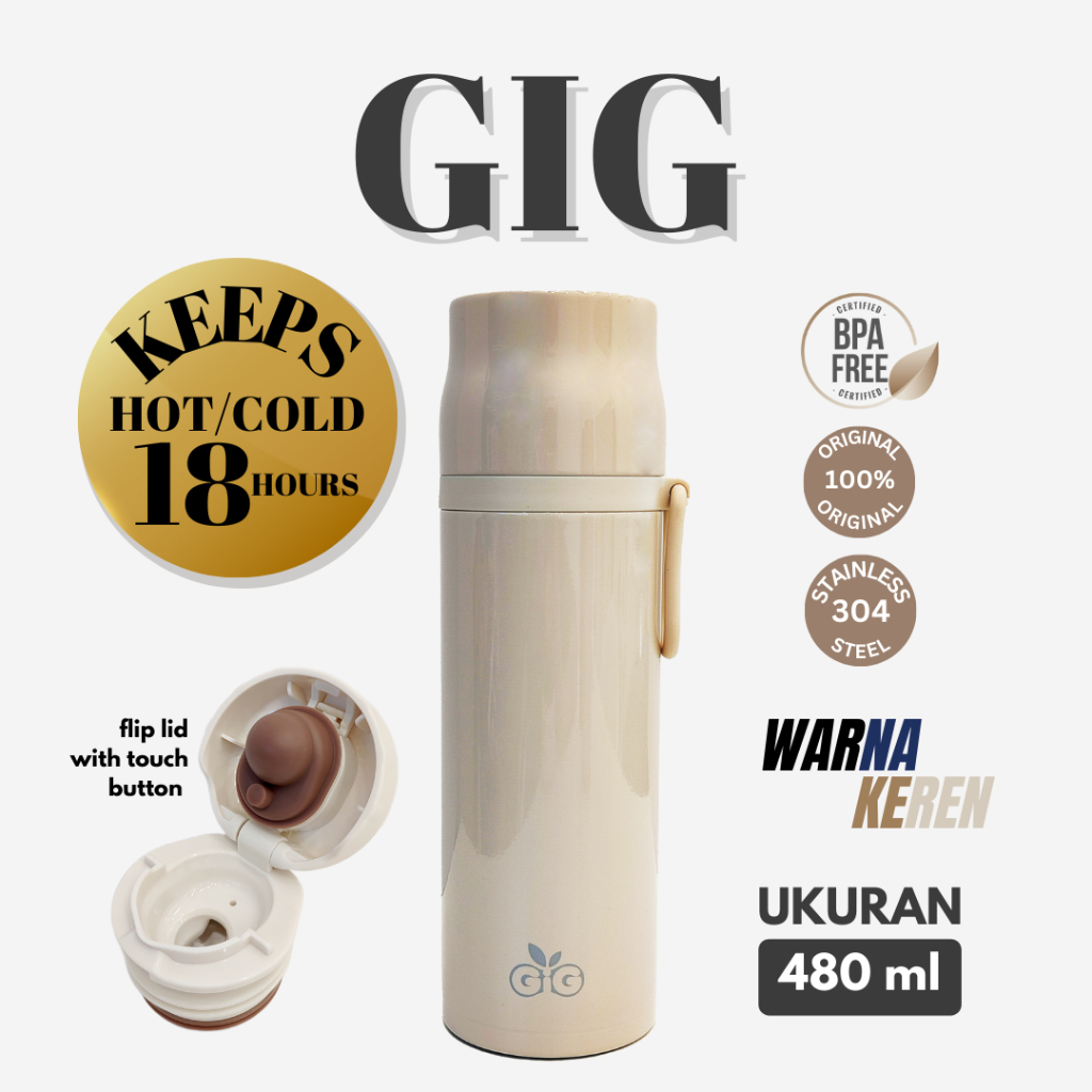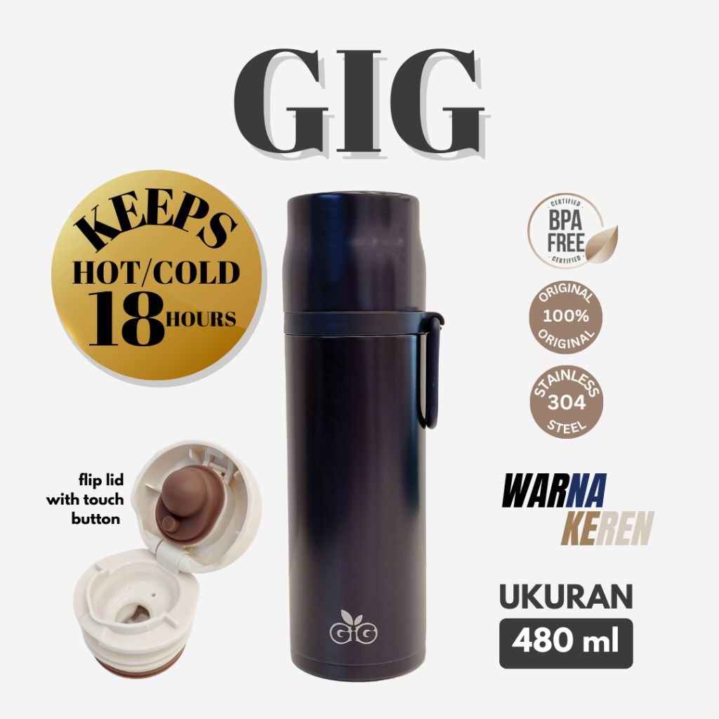 GIG Premium Vacuum Flask 480ml – Termos Stainless Steel Tahan Panas/Dingin 18 Jam | Termos Kopi