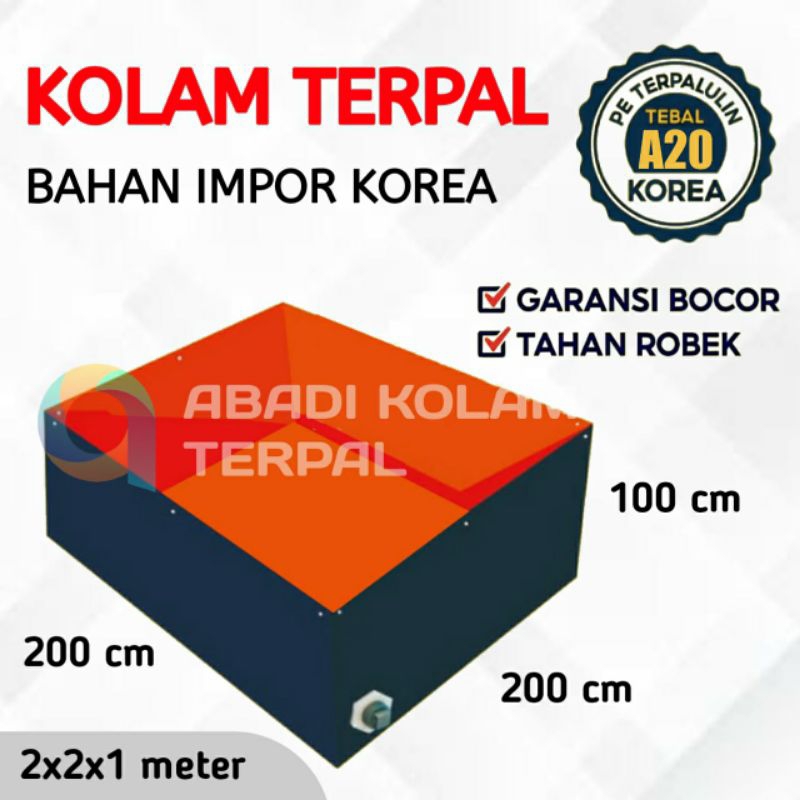 Terpal Kolam Terpal Ikan Kotak A20 Korea 200x200x100/2x2x1 Kolam Terpal Bahan Korea Untuk Budidaya Ikan Lele Nila Udang
