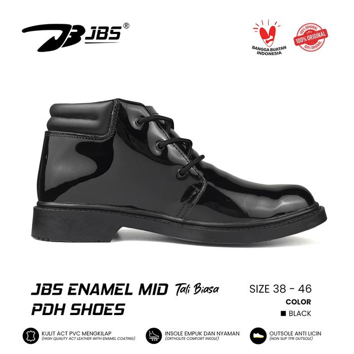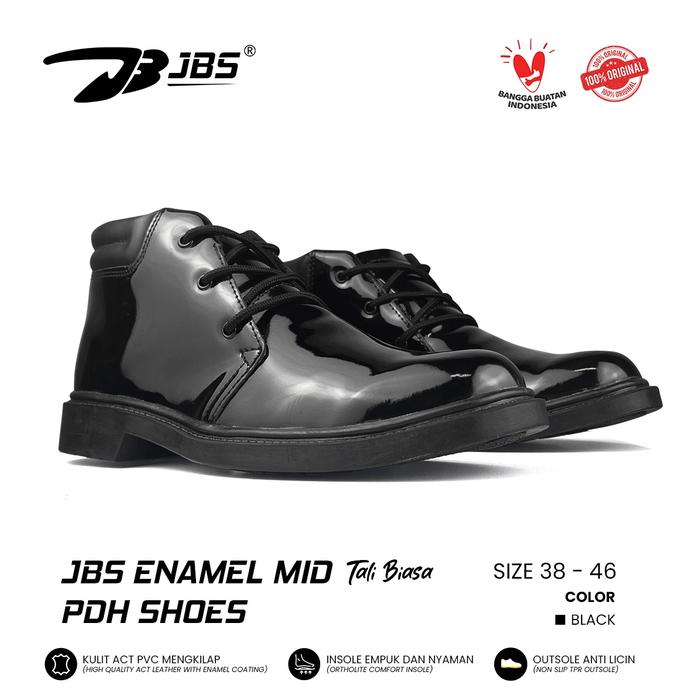 SEPATU PDH ENAMEL MID PRIA POLRI TNI SATPAM SECURITY DINAS TALI HITAM MENGKILAP - MID TALI PUTAR, 38