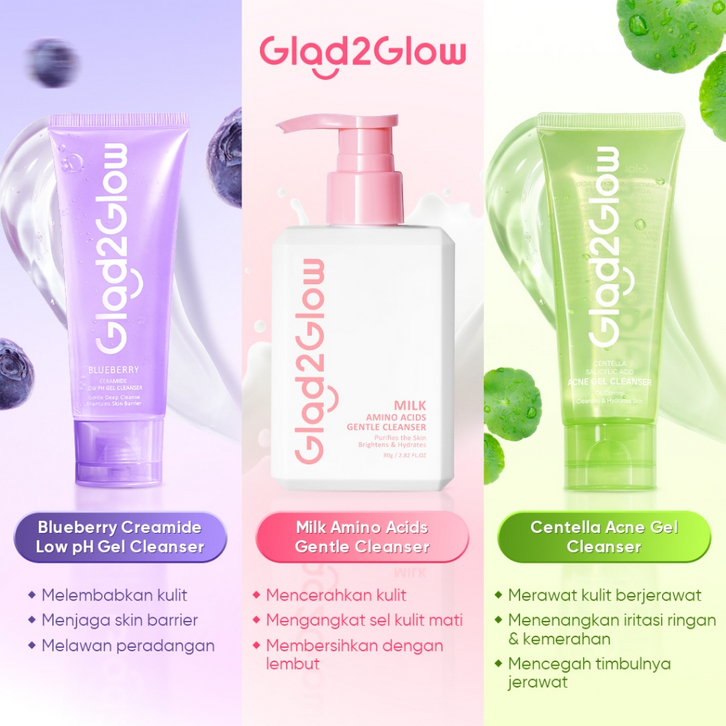 Milk Amino cleanser, Anti acne gel, Blueberry Gel, (HEMAT ISI 3)FW UNGU