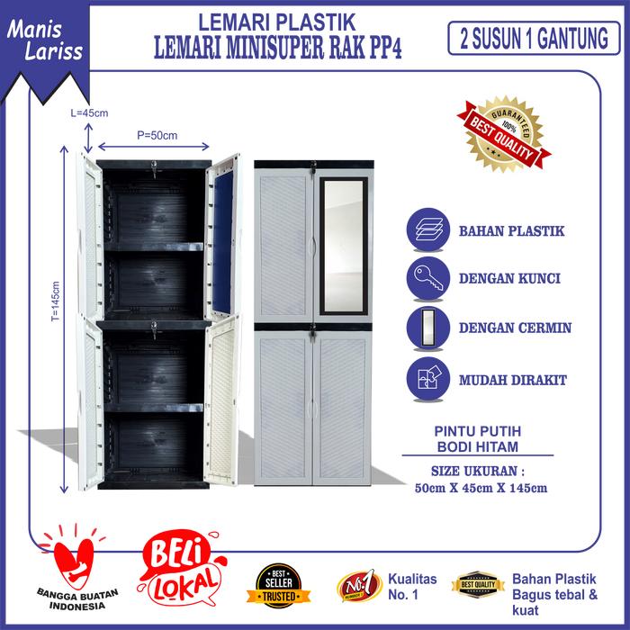 LARIS MANISS LEMARI BAJU PLASTIK LEMARI PAKAIAN PLASTIK LEMARI PLASTIK PORTABLE 4 PUNTU PANJANG DENGAN KACA ATAU CERMIN - DEFAULT