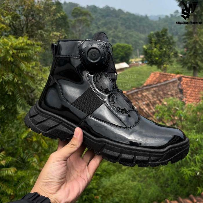 SEPATU PDH PDL TALI PUTAR PENDEK UNTUK TNI POLRI SECURITY DISHUB MODEL MIDTRACK BOOTS SHOES CANVAS PASPAMPRES - HITAM DOP, 39