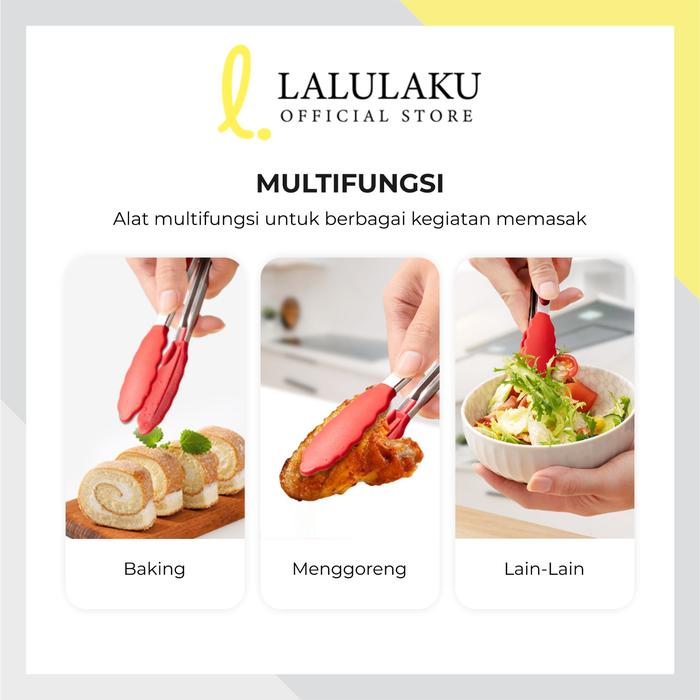 Terlaris Jepitan Makanan Silicone Serving Tong Food Stainless Premium Pencapit Kue Gorengan Tahan Panas - Hitam Hemat