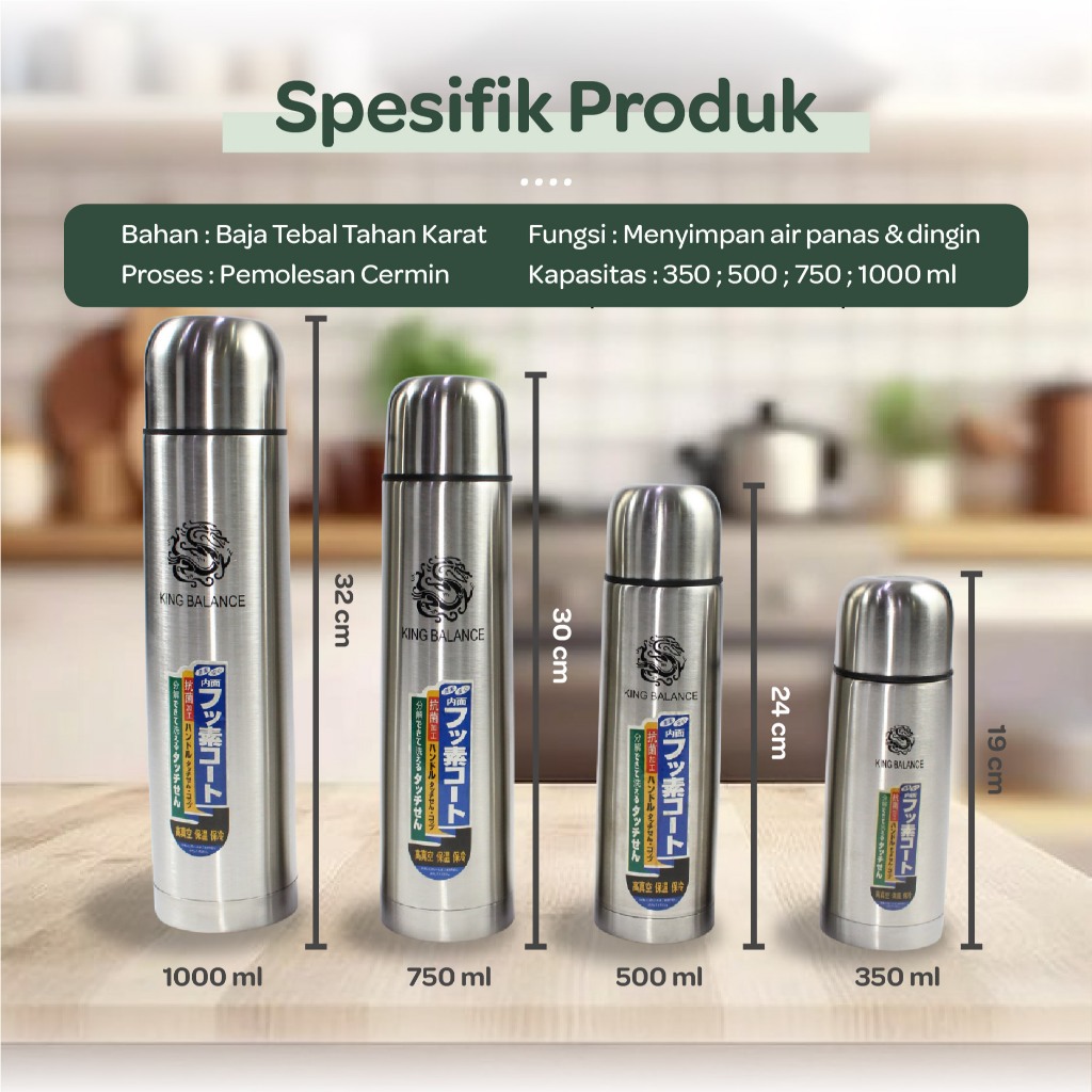 Termos Air Panas Termos Kapsul Stainless Steel 350ml 500ml 750ml 1000ml Free Tas 661