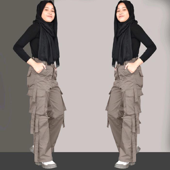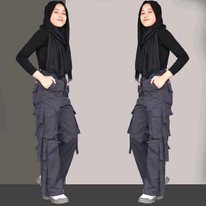 CELANA CARGO WANITA KOREAN STYLE VIRAL PANJANG CASUAL HITAM - HITAM, M