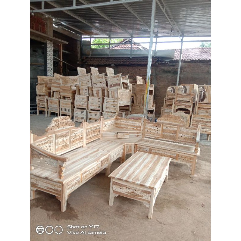 kursi ruang tamu kayu jati Kursi Tamu Sudut Bagong Kayu JatiKursi Tamu Jati Ukir Mahkota Finishing Natural TERLARIS