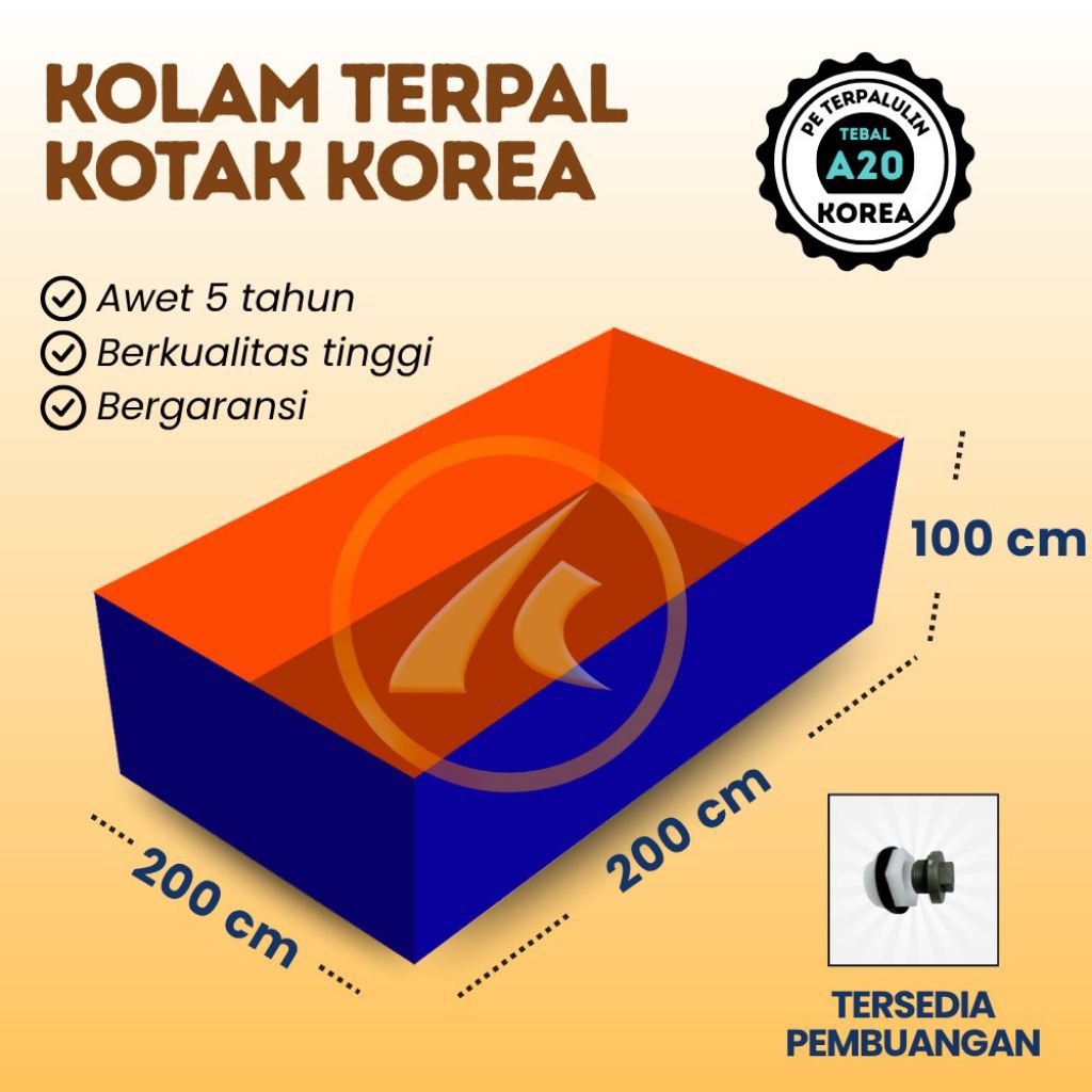 Terpal Kolam Terpal Ikan Kotak A20 Korea 200x200x100/2x2x1 Kolam Terpal Bahan Korea Untuk Budidaya Ikan Lele Nila Udang