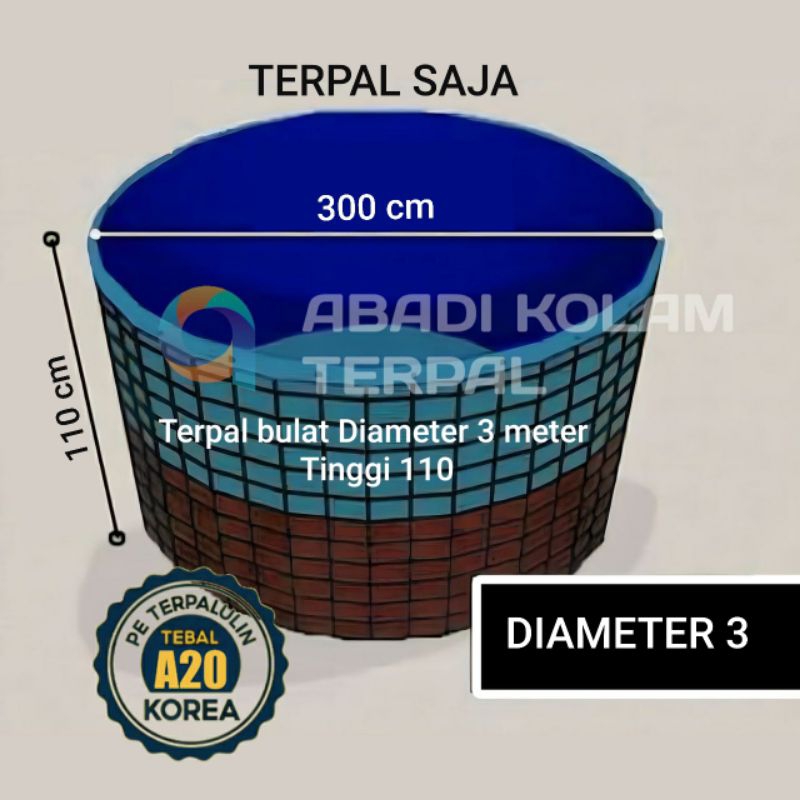 Terpal Kolam Terpal Ikan Bulat A20 Korea D 3 tinggi 1.1 Diameter 3 Meter Tinggi 110 cm Kolam Terpal Bahan Korea Untuk Bu
