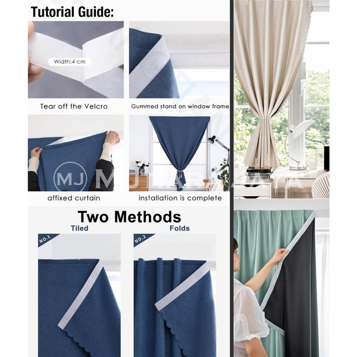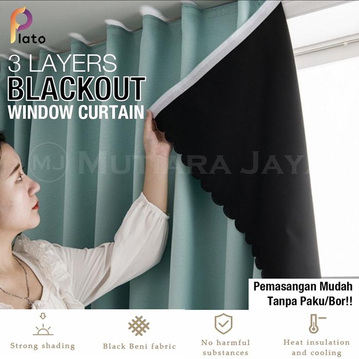 PLATO TIRAI JENDELA GORDEN VELCRO TEMPEL HORDENG JENDELA BLACKOUT - HIJAU, 0,8 X 1,2M