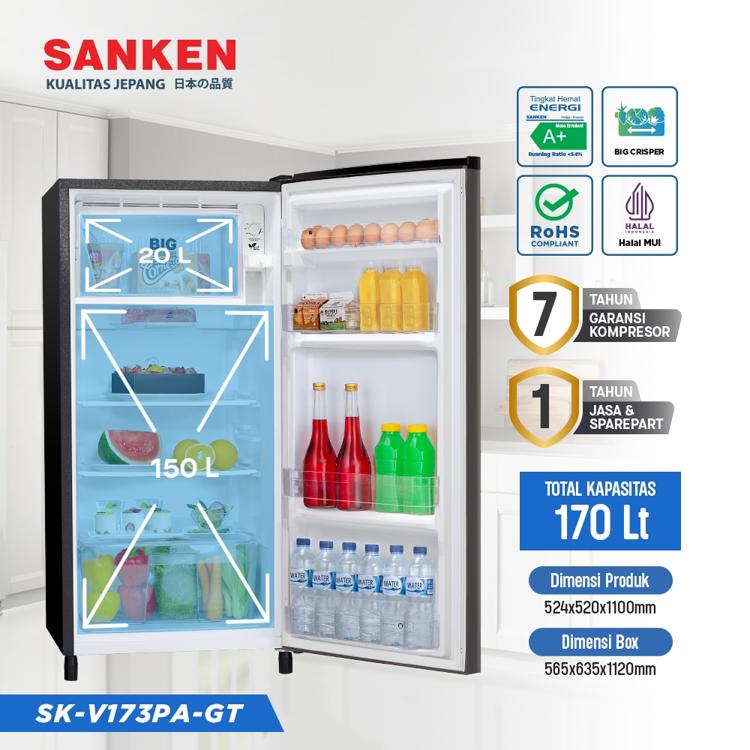 GRATIS ONGKIR Sanken Kulkas Satu Pintu SK-V173PA-GT Grey Titanium