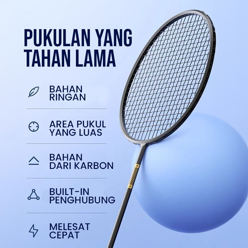 BBAK Raket Badminton Raket Bulu Tangkis Isi 2 Bahan FULL CARBON Berkualitas Olahraga Badminton Original Badminton Racket Free Tas Kok Bulutangkis