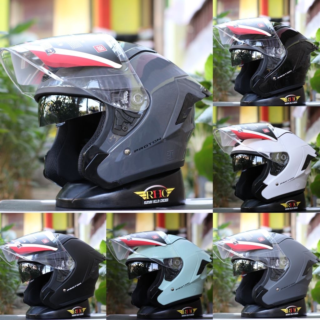 Helm hrv proton solid half face Proton double visor 2 kaca