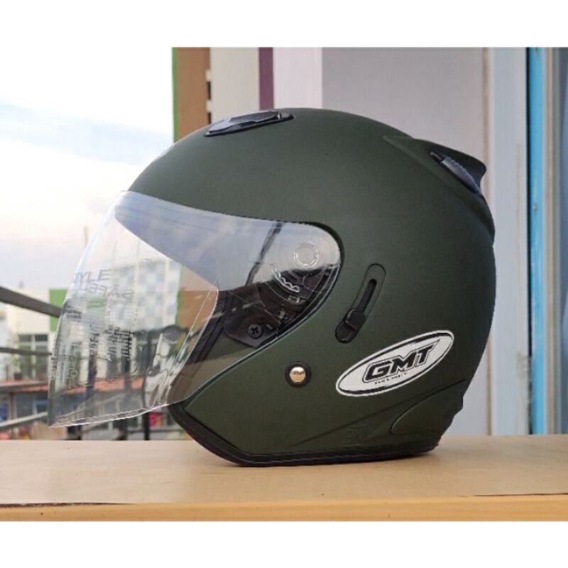 Helm Sepeda Motor Half Face Double Visor GMT Original/Helm Pria Wanita/Helm SNI/Helm Murah Army Doff