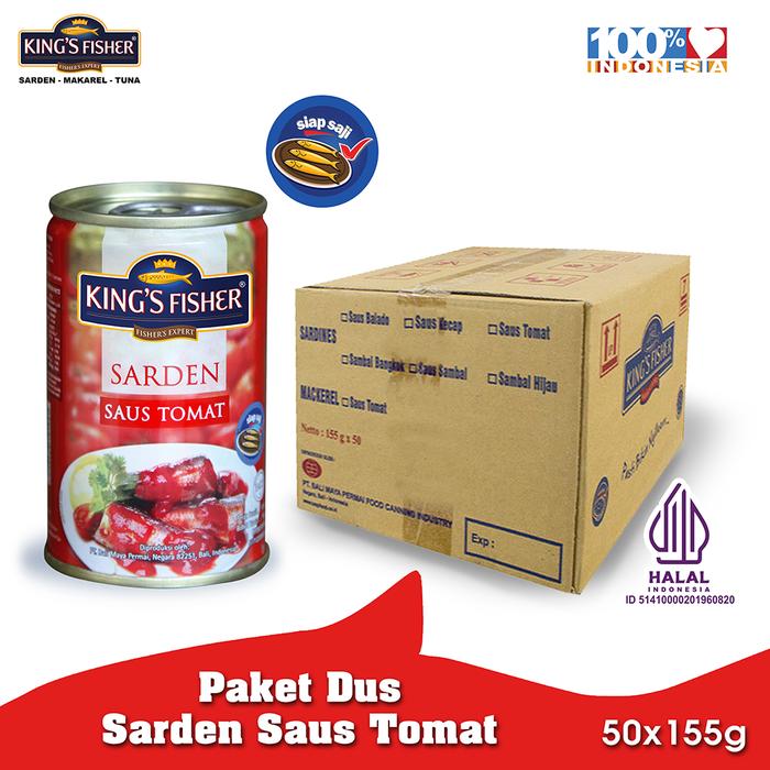 Paket 1 dus 50pc King's Fisher Sarden saus tomat Makanan Kaleng 155g