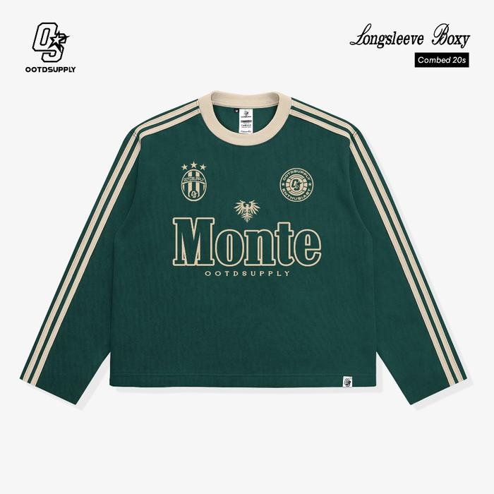OOTDSUPPLY LONGSLEEVE BOXY DOUBLE STRIPE MONTE DARK ARMY L OVERSIZE T-SHIRT LENGAN PANJANG L KAOS KERAH I KAOS STRIPE LSBX006 - DARK ARMY, S