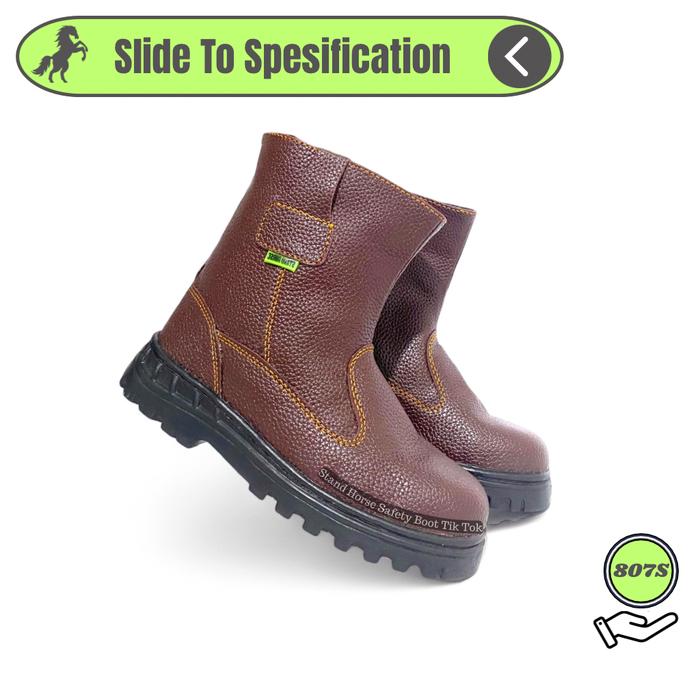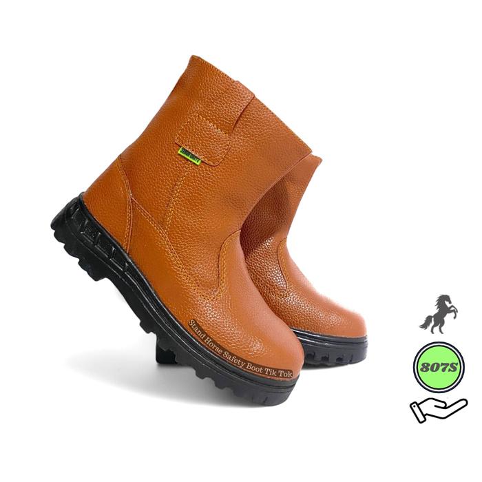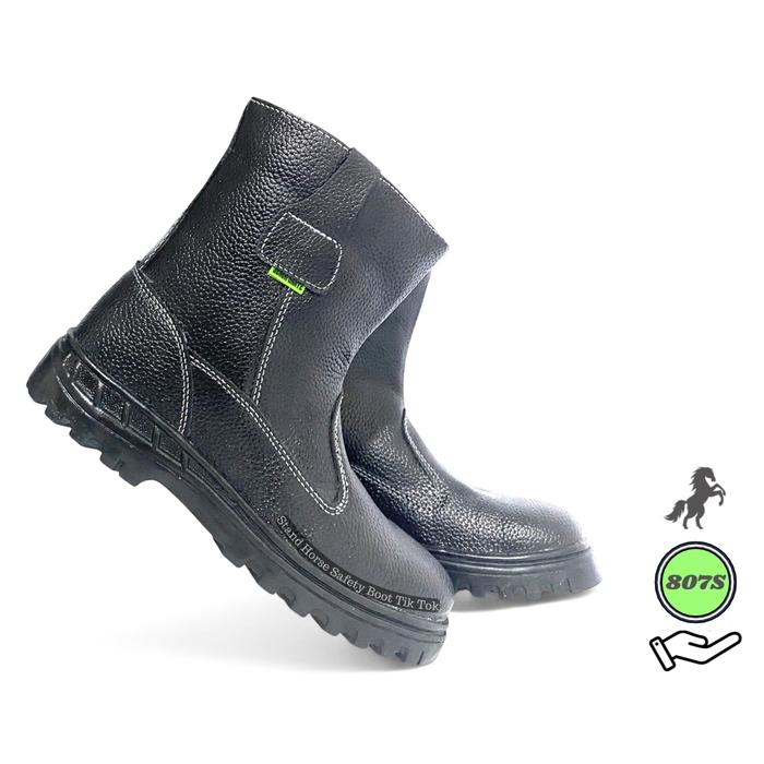 STAND HORSE 807S SEPATU PROYEK PRIA UJUNG BESI MODEL BOOTS KERJA SYNTHETIC LEATHER - HITAM, 39