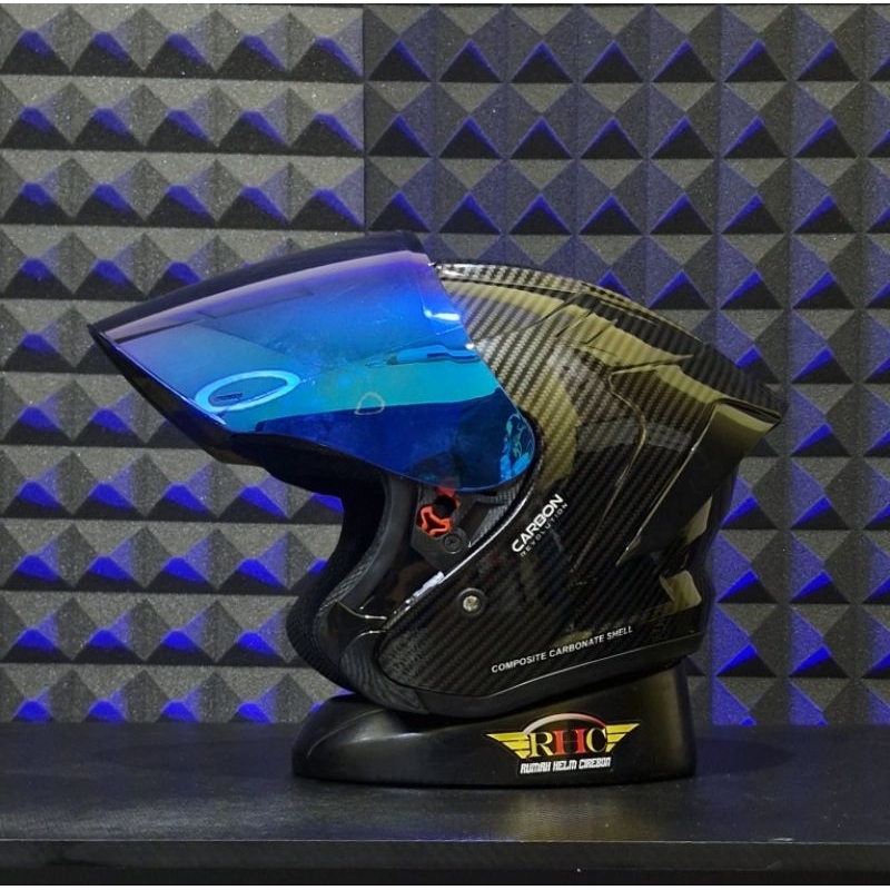 Helm JS Armor Half Face Motif Carbon – Gaya Sporty, Perlindungan Maksimal