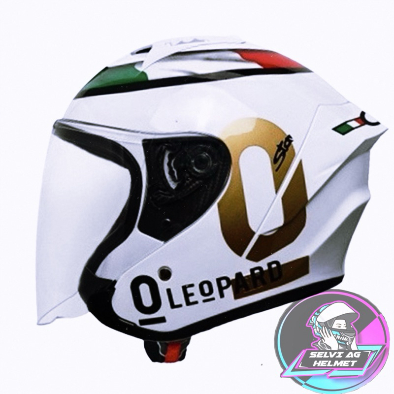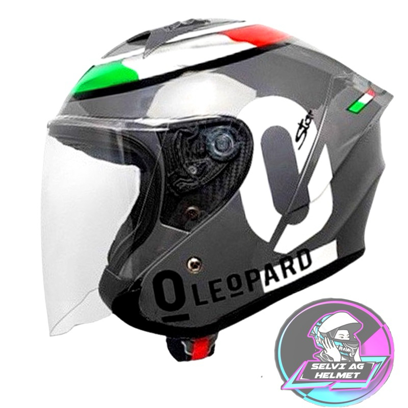 HELM HALF FACE MLA LEOPARD MLA HAKAI MOTIF MLA LEOPARD HELM MLA KACA CLEAR HITAM BLUE SILVER SNI HELM HALF FACE DEWASA SNI