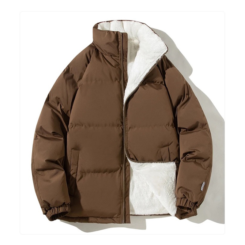 Ohara.Id Jaket Musim Dingin Pria Wanita Mantel Tebal Berlapis Bulu Halus Jaket Winter Casual Unisex