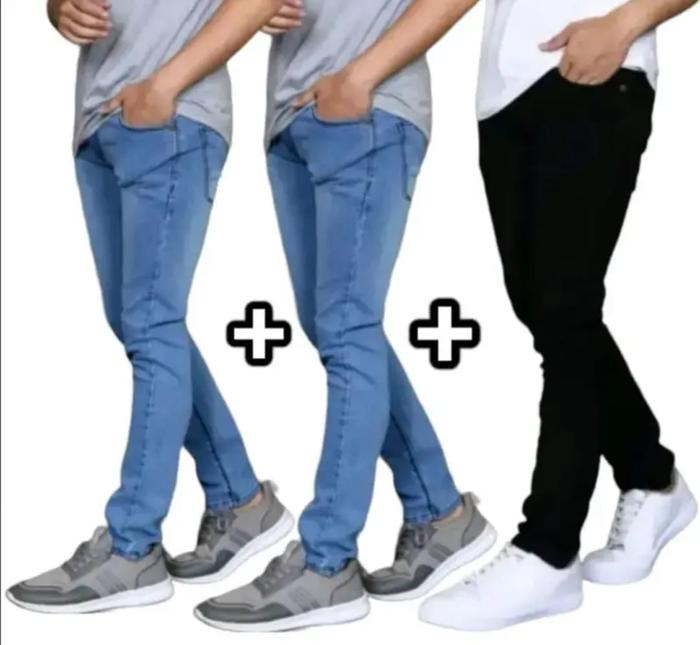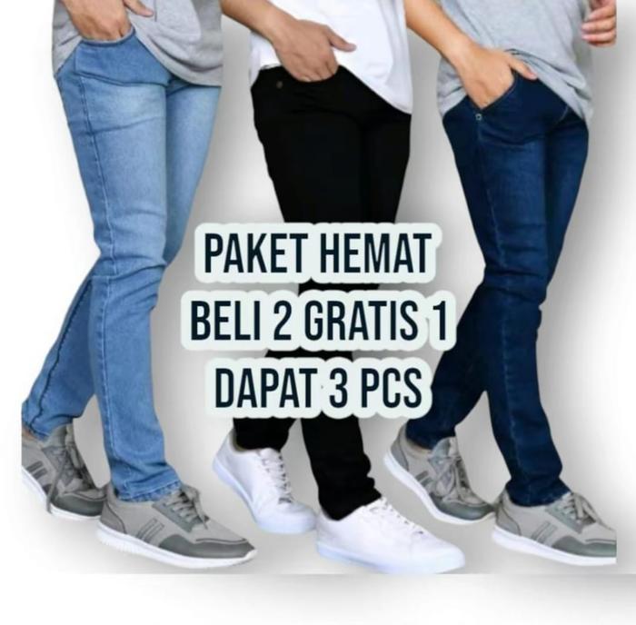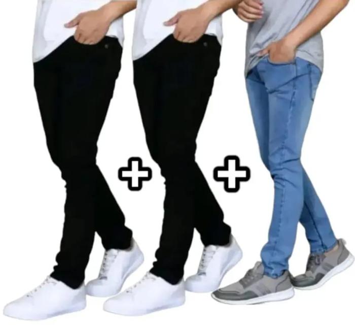 PAKET SUPER HEMAT BELI 2 GRATIS 1 CELANA JEANS PENSIL PRIA SLIM FIT - PAKET 1 ( 1 BIRU MUDA 1 HITAM DAN 1 NAVY ), 26