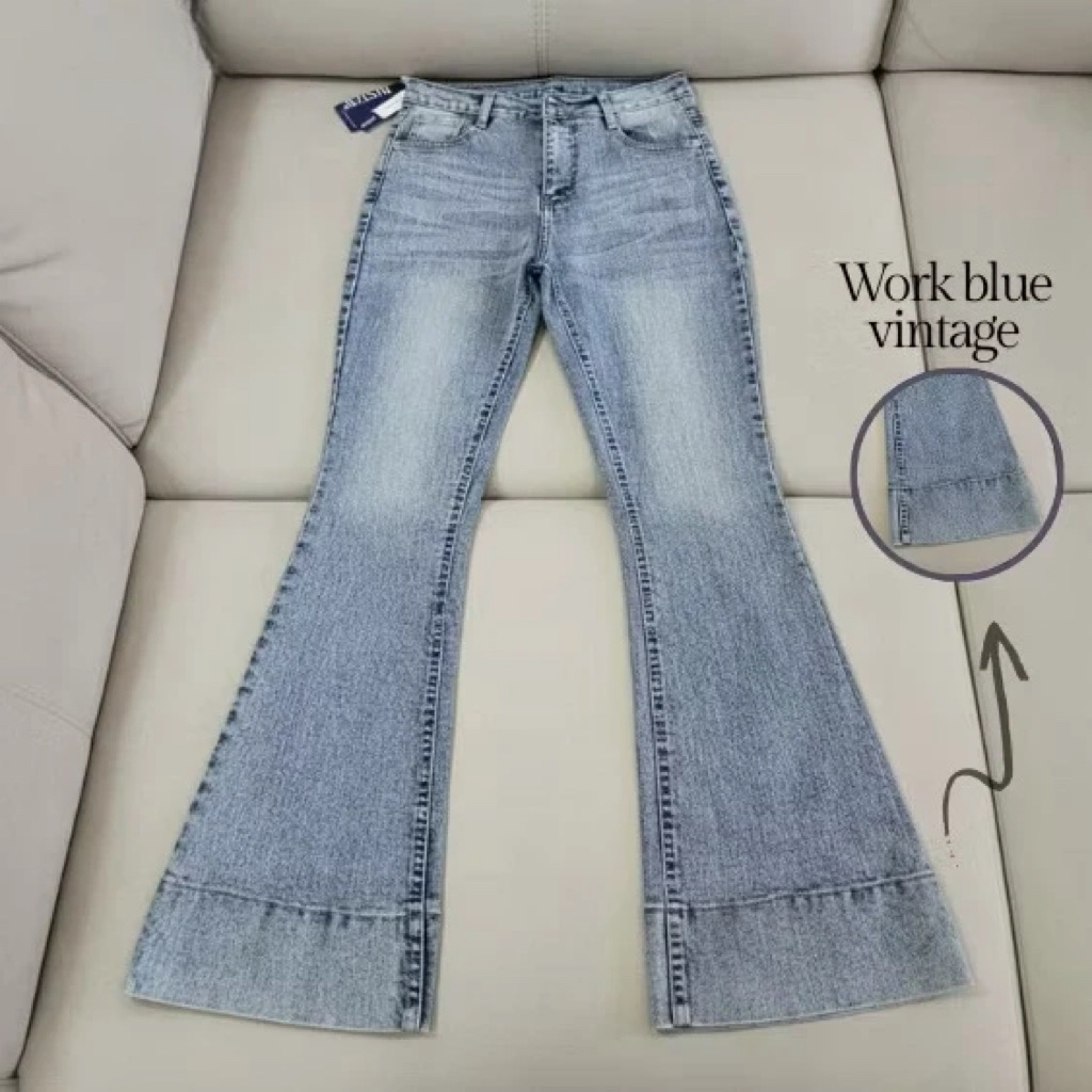 Jennie-HighWaist Cutbray Jeans Celana Flare Panjang Stretch Wanita Retro Vintage Lipat Bawah