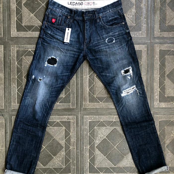 CELANA LECASO DENIM ORIGINAL-CELANA PANJANG PRIA FASHION-CELANA JEANS PRIA BRENDED PREMIUM KEREN - BLUE DENIM SOBEK, 28