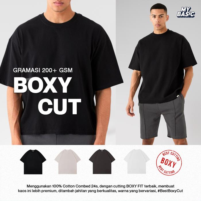 MYBASIC - BOXY CROP T-SHIRT KAOS BOXY FIT WITH COTTON COMBED 24S DENGAN 200 GSM ++ - BOXYCUT 210GSM - HITAM, SIZE M - BOXYCUT