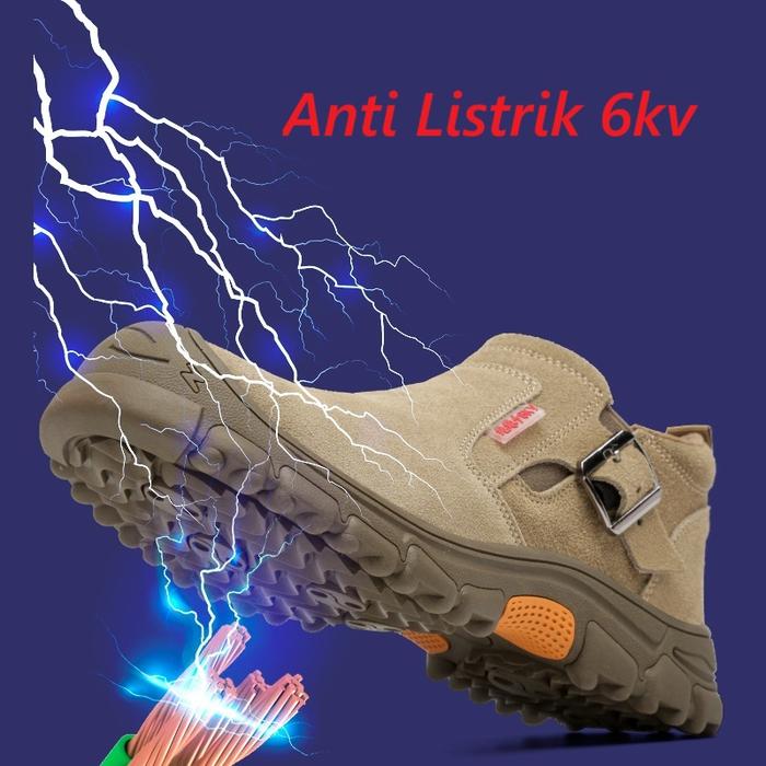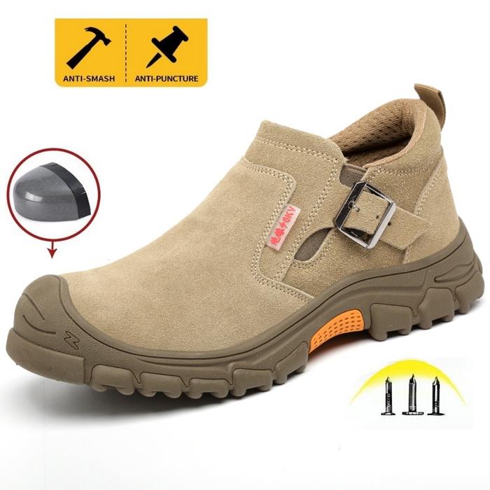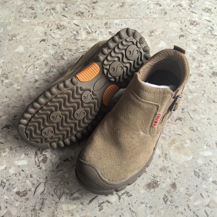 PRELESTY SEPTY SHOES SEPATU SAFETY BOOTS PRIA ANTI LISTRIK TREKKING UJUNG BESI KANTOR KERJA PROYEK TANPA TALI OLAHRAGA PENDEK KUAT 435 - COKLAT, 38