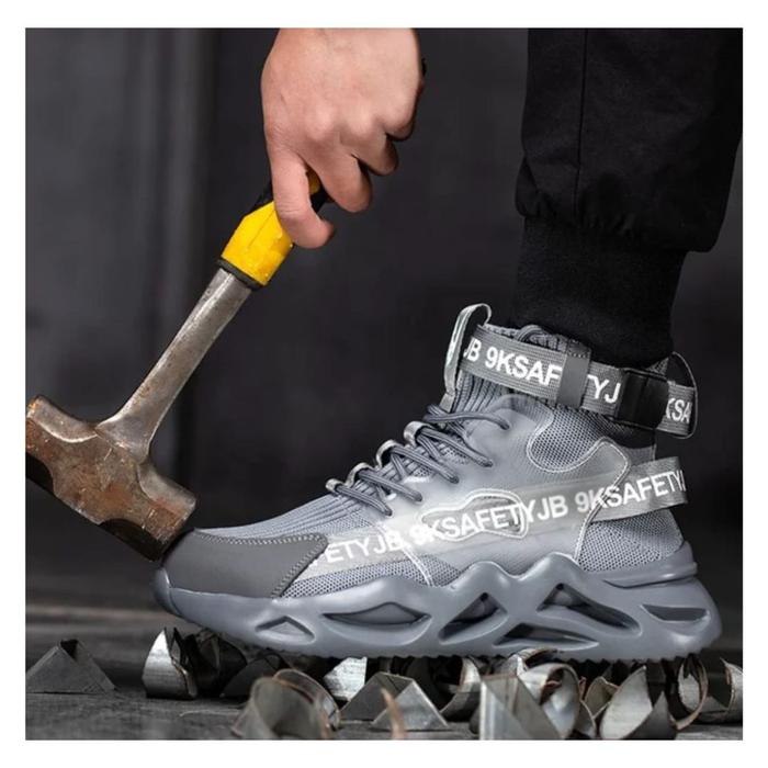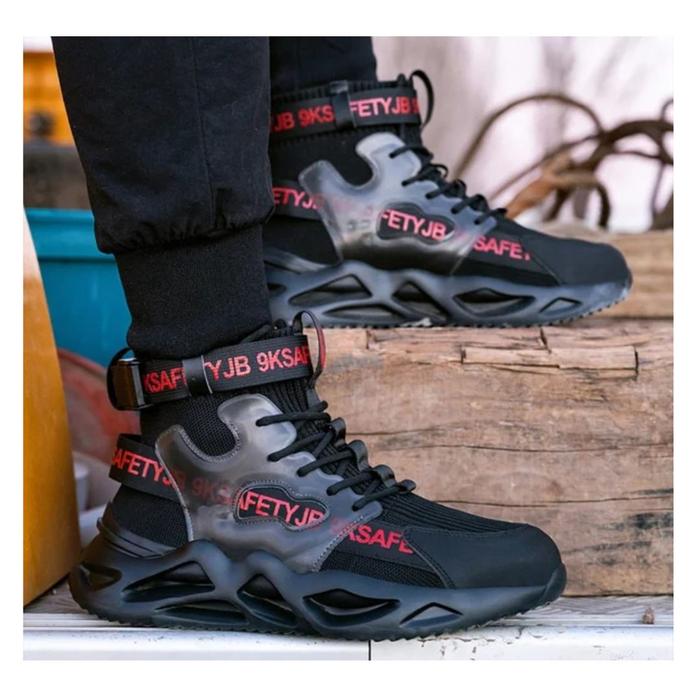 HAKA HIGH SEPATU SAFETY KEVLAR ANTI PAKU UJUNG BESI PELINDUNG LUX SHOES BOOTS - HITAM, 38