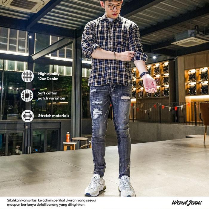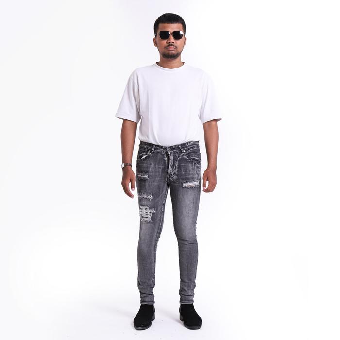 WEIRD JEANS - DAWN GREY - CELANA JEANS PANJANG PRIA SLIMFIT STRECH POLOS DENIM FIT NYAMAN STRETCH RIPPED - DAWN GREY, 28