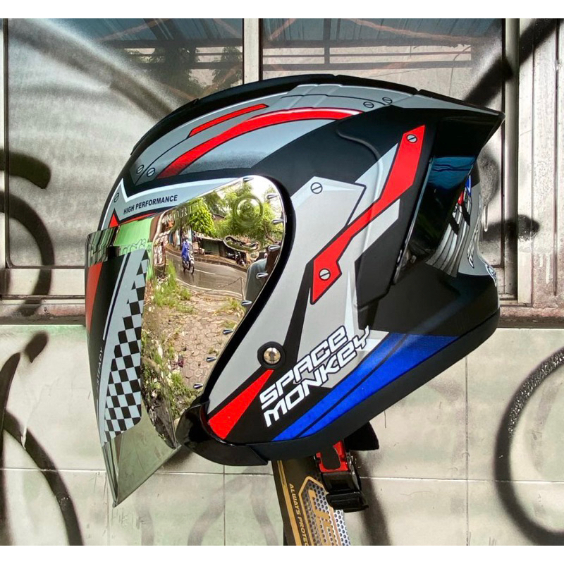Helm Half Face JS armor Motif Paket Ganteng Spoiler 3D