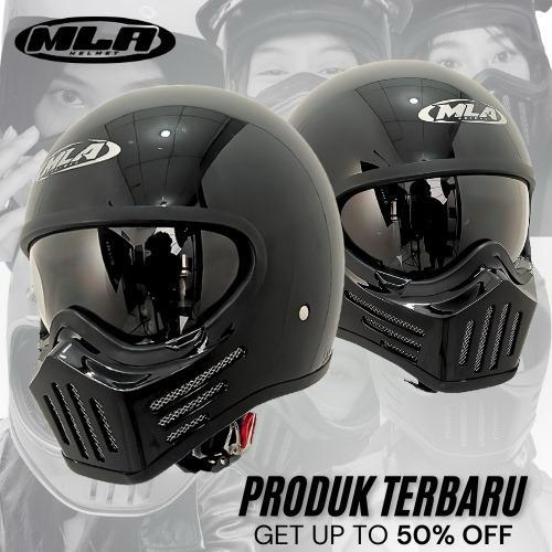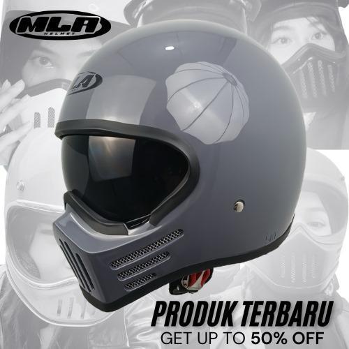 Helm Retro MLA CAKIL HITAM GLOSY VISOR SMOKE | Helm Full Face Premium Pria Dan Wanita Dewasa SNI
