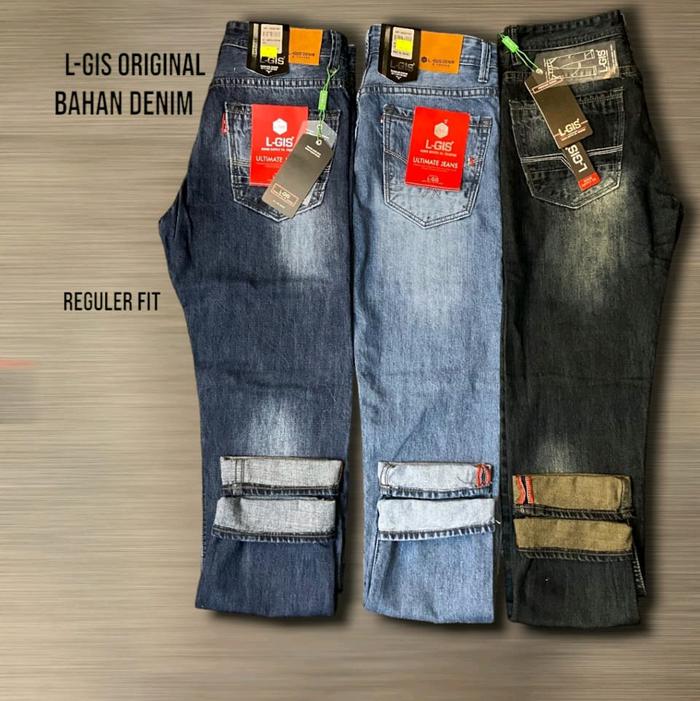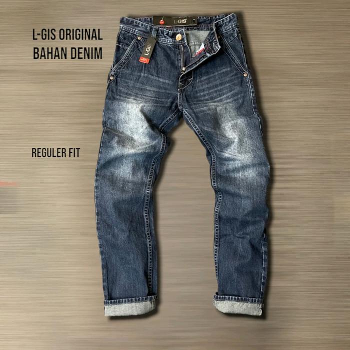 PROMO JEANS L-GIS ORIGINAL CELANA PANJANG PRIA STANDAR REGULER FIT (DENIM) NYAMAN - BLIZT KANTONG BULAT, 28