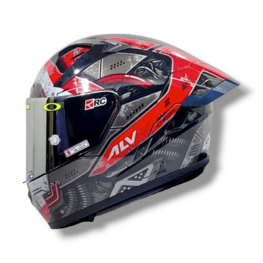 Helm ALV GENESIS MOTIF CYBORG BLUE Kaca Visor Silver | Helm Full Face Premium Pria dan Wanita Dewasa Original SNI