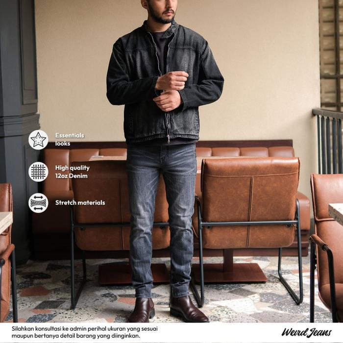 WEIRD JEANS - VUSION GREY - CELANA JEANS PRIA SLIM FIT STRECH NYAMAN WARNA ABU-ABU POLOS - VUSION GREY, 27