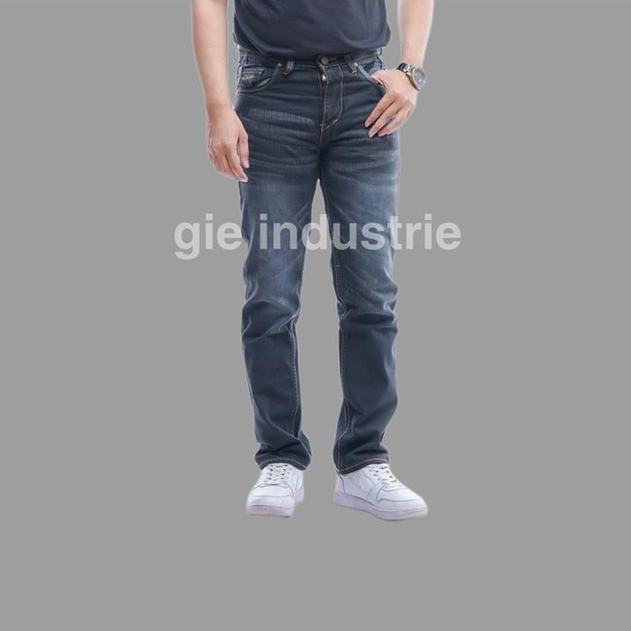 CELANA JEANS G'ELZIO ORIGINAL REGULER FIT STANDAR DENIM TEBAL NYAMAN - BLUE STONE/BIRU TUA, 28