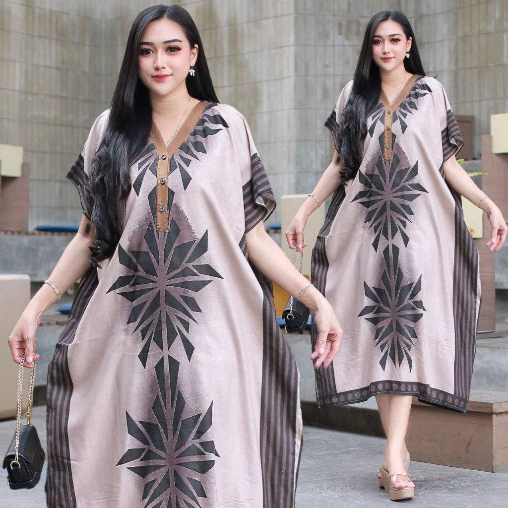 Daster Lowo Super Jumbo Ld 145 Yuriko Busui Daster Salur Viral Kancing Depan Leher V Kalong Coklatan