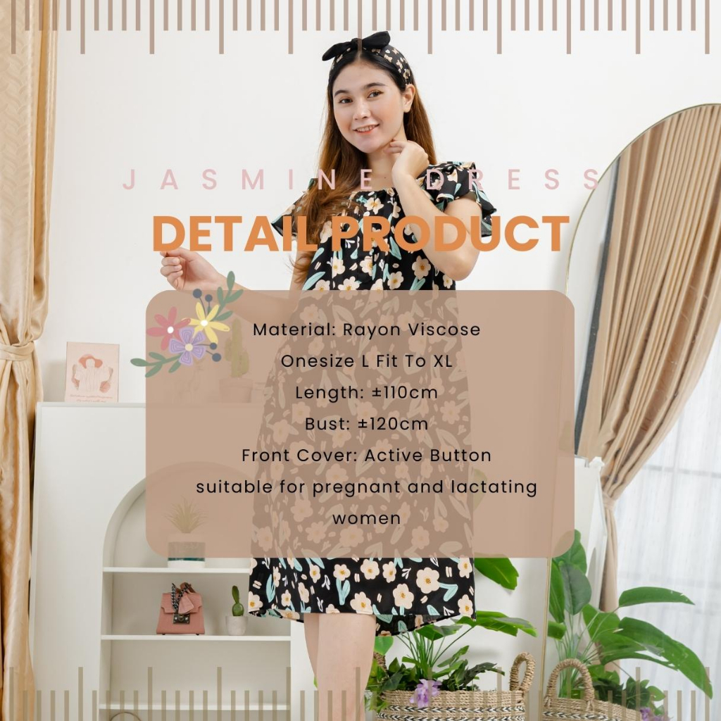 Ademinco Jasmine Dress Rayon Reactive | Daster Ibu Hamil Dan Menyusui